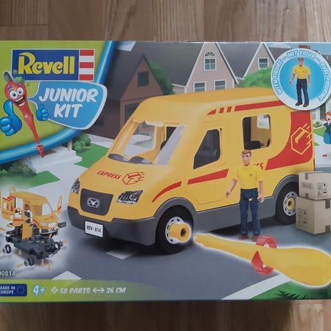 Moderne traktor med bondefigur og tilbehør. Med den medfølgende Junior Kit skrutrekkeren kan barnet sette sammen sin egen traktor. Bondefiguren er bevegelig og kan sitte eller stå i traktoren. Du kan til og med styre traktoren ordentlig med skrutrekkeren, ved å skyve skrutrekkeren gjennom førerhuset og på rattet.