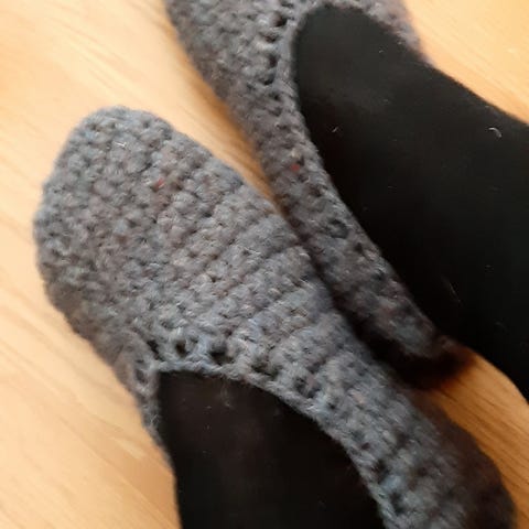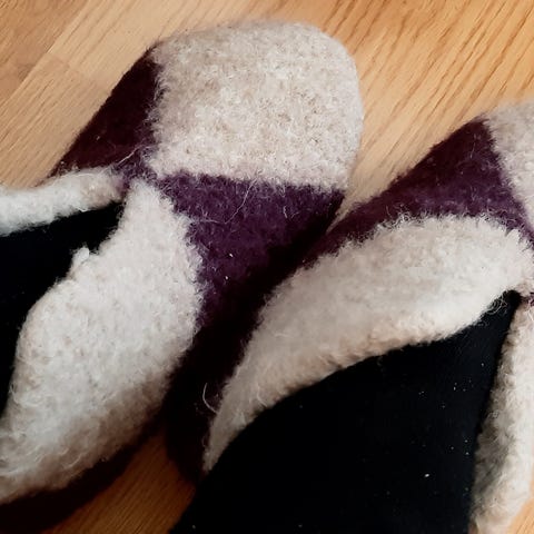 Tøffelen er håndtovet av 100 % ufarget merinoull.