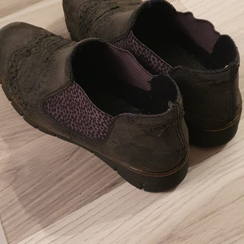 Splitt i siden gjør tøffelen enkel å ta på, samtidig som den sitter godt på foten.