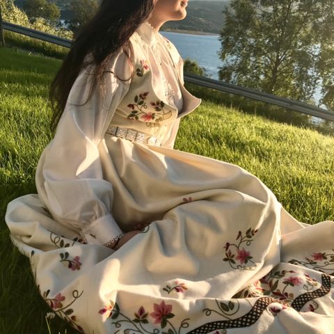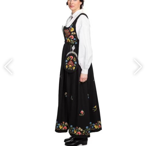Kun det beste i broderi, søm og stoffer, bare norskt arbeid. Du kan velge farge. Alt er brodert på Opplandet. Sølvet kommer i tillegg.