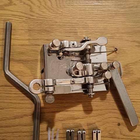 Med Hipshot VINTAGE Locking Kit for 8,5 mm hull i headstocken slipper du å utvide mekanikkhullene på din vintage gitar for å få locking tuners. Dette er et komplett oppgraderingssett med 6 locking stemmeskruer som leveres med Universal Mounting Plate (UMP). UMP eliminerer behovet for skruer på baksiden av headstocken. Dette gjør at du slipper nye skruehull og installasjonen blir 100% reverserbar. UMP gjør det enkelt å bytte mekanikk med et profesjonelt resultat.