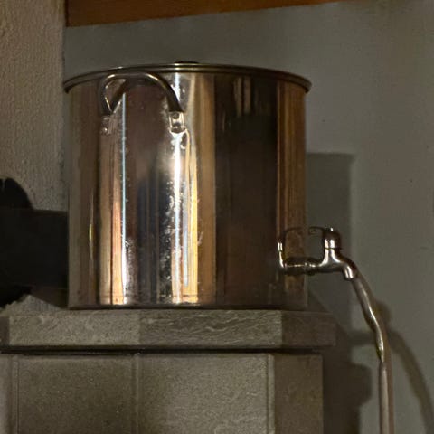 Kjell er en hyttekjele med tappekran som rommer hele 25 liter. Hyttekjelen passer perfekt på svartovnen eller et vanlig gassbluss. Den er ideell til å tine snø eller koke vann i.