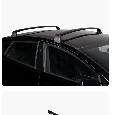 Whispbar Flush stativ låsbart + Packline FX 210 takboks (låsbar) til Tesla Model S fra ca midten av 2015 --> (det ble gjort en liten endring i festene da). Lokket på festet går nå ut fra bilen, se bilde
