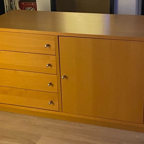 Skuffene gir enkel sortering og stor oppbevaringsplass, selv om skapet bygger bare 25cm ut fra veggen.