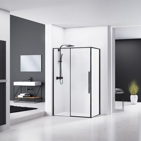 SOLAR dusjkabinett/skyvedør/sort matt/klar glass