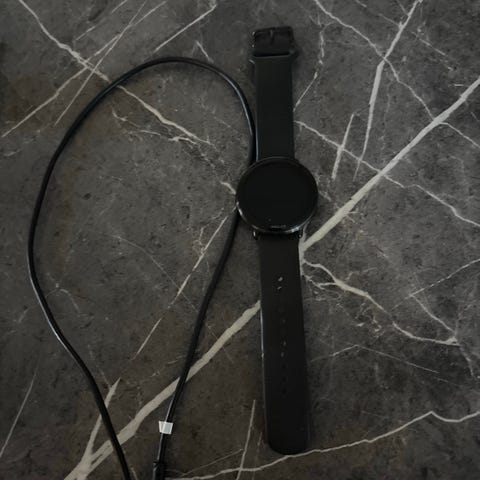 klokkehus og lenke i titan, også blå silikonrem er med.