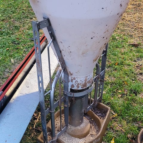 Monteres direkte på vegg eller på innredning. Automaten er inndelt i 2 spiseplasser, og har et justerbart spjeld for dosering av kraftfôr.
