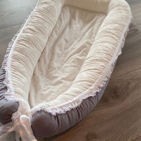 Babynest laget av mykeste bambus viskose er med på å skape et trygt og koselig miljø for babyen din. Den passer både som innlegg i vugge eller sprinkelseng, stellematte, under reise, og i foreldrenes seng.