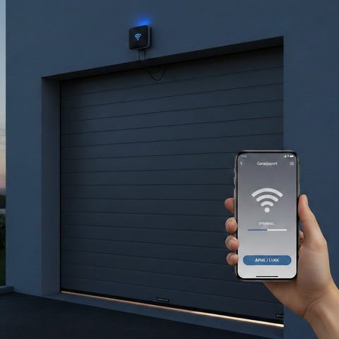 Smart Home styring av garasjeporten med app på tlf. Kompatibel med Alexa og Google Home.