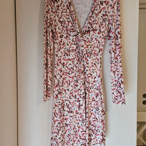 Den populære omslagskjolen i lin fra Isabel Marant, hvit med rysjer og omslag med knyting. Str. 38 men tilsvarer S