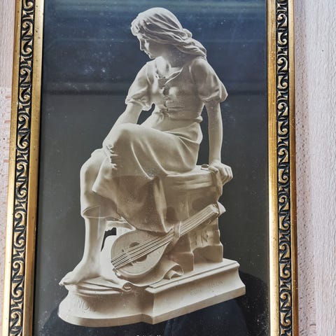 Plakat i behagelige grå toner malt i tynne lag for å skape dimensjon. Den bronse fargen skaper kontrast og varme til bilde og rommet det er i. Bildet er perfekt til å dekorere veggene i stuen med.