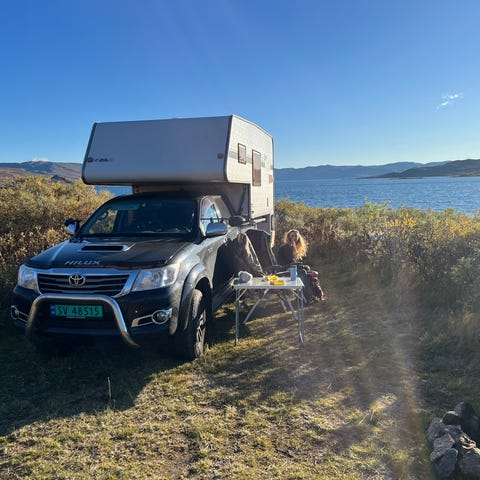 Markise som enkelt festes til bilens takbøyler.