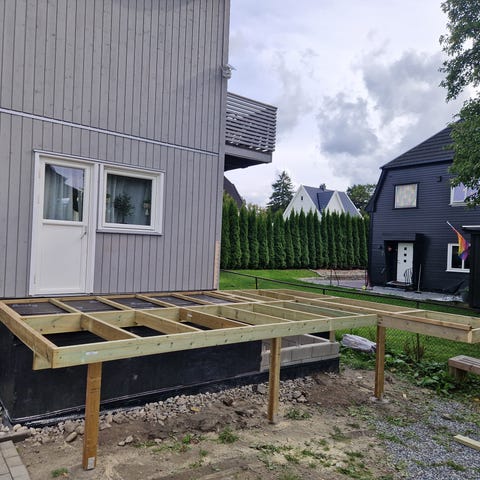 Ved ny CU-impregnert terrasse anbefaler vi at den ligger noen mnd før behandling, sånn at grønnfargen går mest mulig ut, og terrassen tørker godt. Den kan gjerne ligge et helt år før behandling.