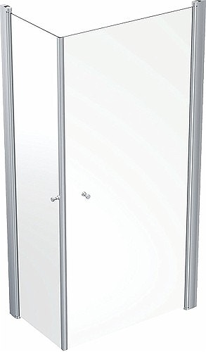 Universale glassfelt med sølvprofiler som kan monteres frittstående og i kombinasjon med dusjdør.