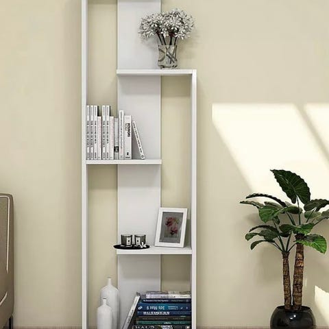 Bokhyllen er enkel å rengjøre med en fuktig klut. Den er enkel å montere med medfølgende monteringsmaterialer.