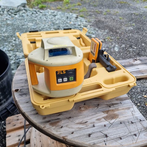 Theis planlaser med mottaker, stang og stativ.