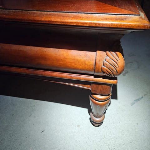 Botanisk hage møbelforretning snekrer ben til gamle heltre bord. Norsk furu, som ifølge møbelsnekrere, består av hel ved tørket lenger enn dagens importerte furu.