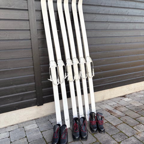 Brukte ski fra forsvaret med staver og binding.Komplett sett. Lengde ca 210cm.