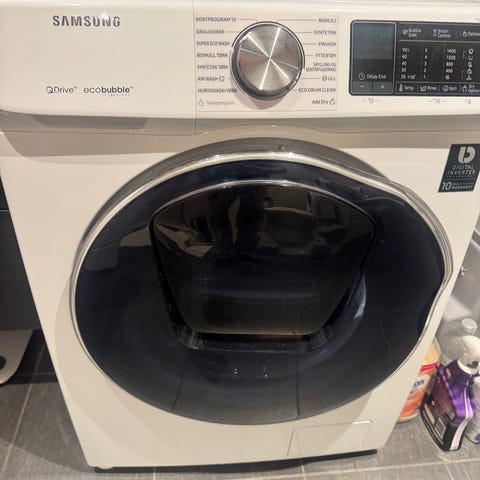toppmodel AEG L99695HWD vaskemaskin og tørketrommel med varmepumpeteknologi. Vask og tørk uten stopp. A energimerking, bruker mindre vann og energi. Når plassen ikke er stor nok for to maskiner er dette en utmerket maskin av høy kvalitet. Dette var to