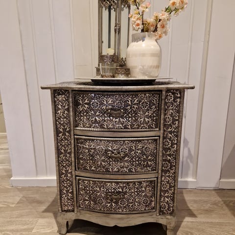 Sjarmerende møbler i Puro-serien, som imponerer med kjærlige detaljer og kunstneriske håndskårne ornamenter. Den lyse, naturlige fargen gir et friskt og moderne preg.