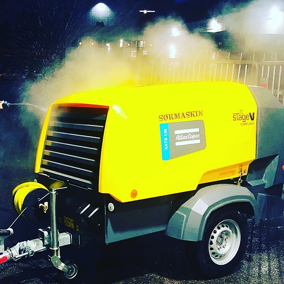 Vi tilbyr E-Air serien fra Atlas Copco med elektriske transportable luftkompressorer.