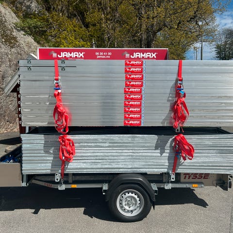 Eksempelbilde av hengeren ferdig pakket med stillas