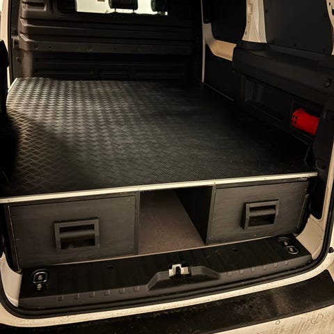 Dobbelgulvet Smartfloor er 100% tilpasset de mest solgte varebilene, for best mulig utnyttelse av plassen i varerommet. Skuffene kan dras ut i fullt uttrekk og har en felles nyttelast på hele 500 kg.