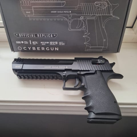 En av de barskeste pistolene på markedet, en fullt lisensiert Magnum Research. INC Deagle L6 softgun! Pistolen har en svær split-slide som gir god rekyl når du skyter, på full-auto sparker denne virkelig fra seg. Pistolen har 21mm rail både under og over som lar deg feste sikter og laser eller lykt.