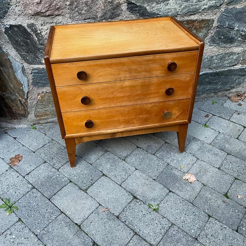 lekker skjenk eller buffet i teak dekorert med Biri-tapet