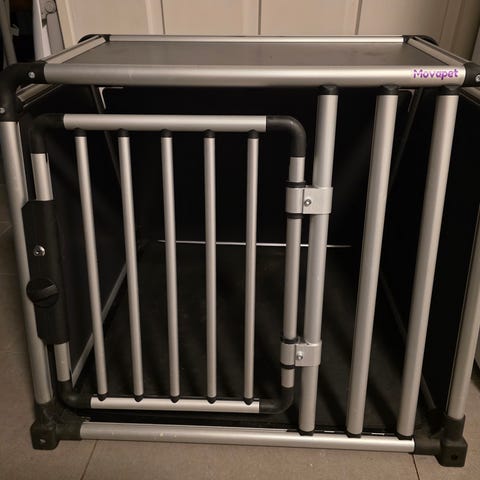 Hundebur i aluminium for bruk i bil. Buret er stabilt, sikkert og utnytter plassen i bagasjerommet effektivt. Buret kommer med låsbar dør.
