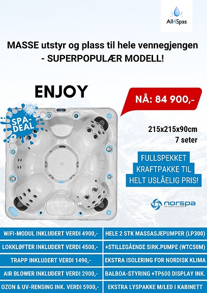 Trenger du service på ditt utendørs spabad? Gå inn på All4Spas.no og fyll ut kontaktskjema, ring 405 33 300 eller kontakt oss via Facebook, så tar vi kontakt med deg i løpet av kort tid.