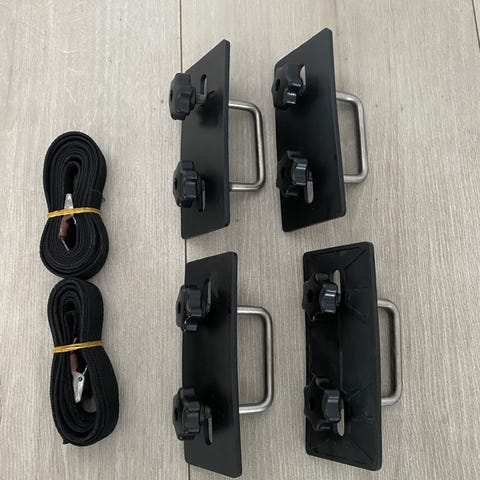 Dersom man ønsker padding på bøylene må dette kjøpes som tilleggsutstyr. Monkeybars leveres som avbildet, i tillegg til en ekstra komplett vakuumkopp som reserve.