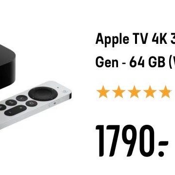 Diverse Tilleggsutstyr inkludert Lightning til USB-kabel, Siri Remote