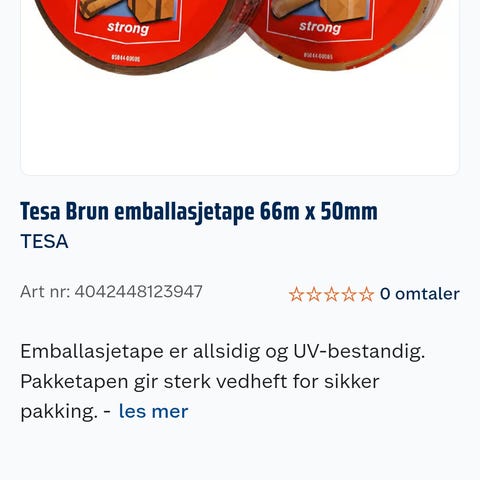 Pakketape med logotrykk i 1-farge, totalt 108 ruller. Pris pr stk er kr 35,00 pr rull eks mva. Total pris blir da kr 3.780,00 eks mva (kr 4.725,- inkl mva). Oppstart/Reprokostnader er inkludert. Leveringstiden er ca 5 uker etter godkjent korrektur. NB: Ved negativt eller heldekkende trykk tilkommer et tillegg på 30%. Rullbredde er 50mm, lengde rull 66mtr, beste kvaliteten i markedet (produsert av pvc, ikke PP (polypropylen). Logo (vektor, dvs AI eller EPS) må sendes oss. Vi kan IKKE bruke JPG-logo. For flerfarget logo, se nettbutikken for priser.