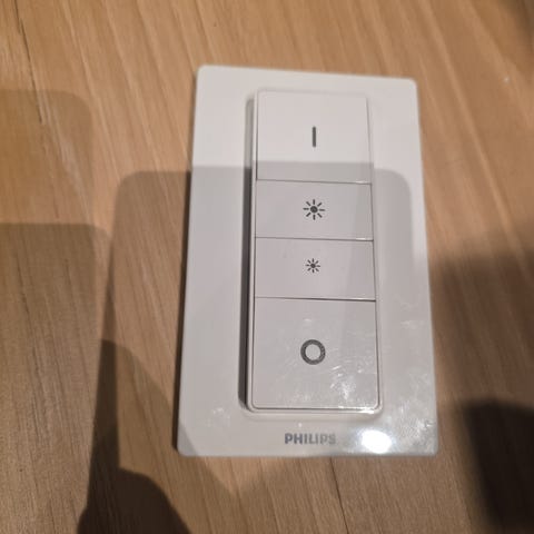- Philips Hue Dimmer Switch, magneter eller ELKO-ramme medfølger ikke.