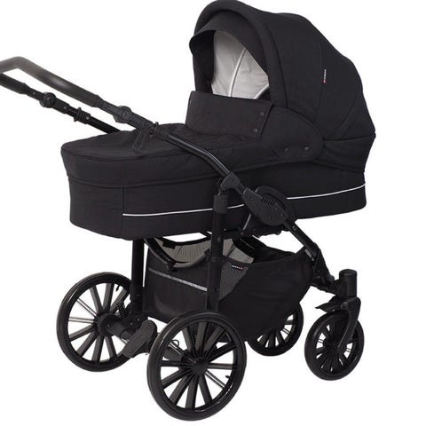 Nydelig baby vogn med en lang kroppsmåling på 97 cm. Stolen har ryggstøtte, madrass og avtakbar, vaskbar deksel. Hetten er ventilert, for optimal sirkulasjon i vognen. Håndtaket er polstret i behagelig mykt skinn og håndtaket er høydejusterbart. De svingbare forhjulene gjør bilen enkel å kjøre. Leveres som standard på lufthjul med kulelagre. Barnevognen kommer med heis og skiftende veske.