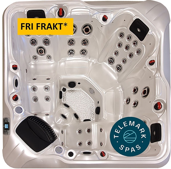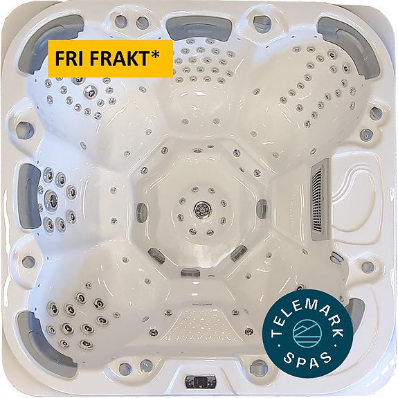Alle dysene er optimalt tilpasset setene og sengene, og med alle de 57 vanndysene og 12 luftdysene så vil du få en enestående massasje og hydroterapi. Dette badet er utstyrt med det spesielle FootWell systemet, som ved hjelp av to kraftige 5 tommers dyser gir en dyp og kraftig fotmassasje. Tuddal er i tillegg utstyrt med en champagne/vinkjøler slik at du kan nyte kald drikke.