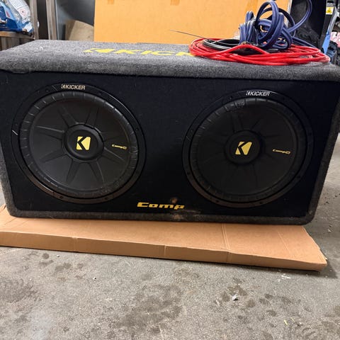 Komplett Kicker basspakke med 2x12-tommer CompC i super effektiv kasse, forsterker og riktig dimensjonert tilbehør som trengs for montering.