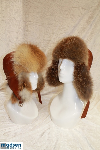 Vakre pels luer med regulerbar størrelse. Finnraccoon med sort nappa skinn i pullen. Luen har regulering slik at den passer de aller fleste størrelser. Klaffene kan festes bak i nakken, eller oppå hodet for å få en forandring, eller bare for å "lufte litt".