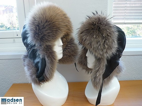 Vakre pelsluer med Rødrev pels med lammenappa i farge som matcher pelsen.