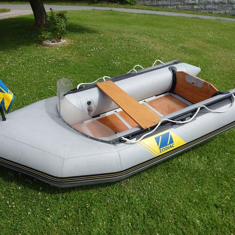 Gummibåten leveres komplett med bærebag, rep.sett, fotpumpe og årer.
