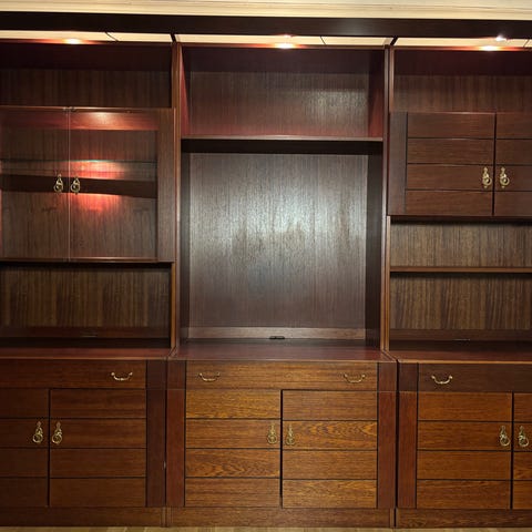 Veggen de luxe i teak designet av Torbjørn Afdal/Rolf Hesland for Bruksbo tegnekontor