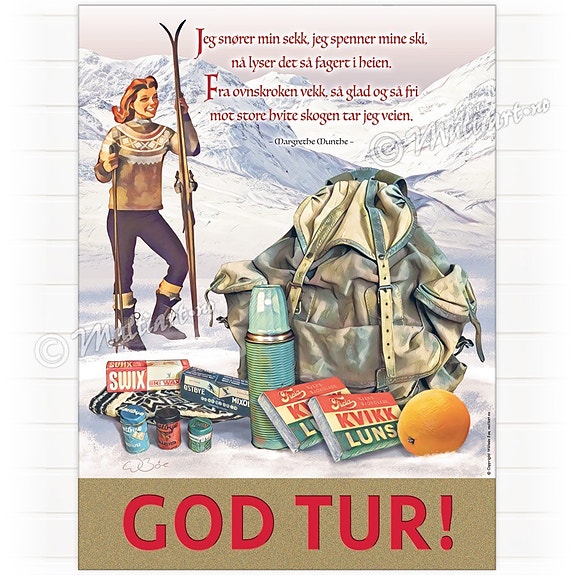 Plakat i retrostil. Tegningen på plakaten er inspirert av en kjent retro eske med saltpastiller.