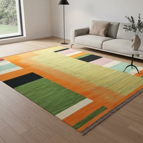Dekorativ kelim med god størrelse og format.