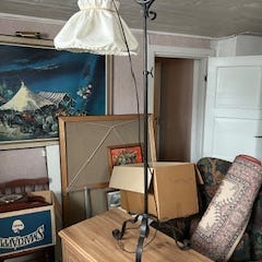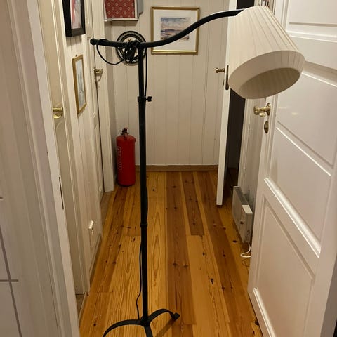 Gammel smijerns stålampe, uten skjerm. Nylig byttet til jordet støpsel og ny pæresokkel.