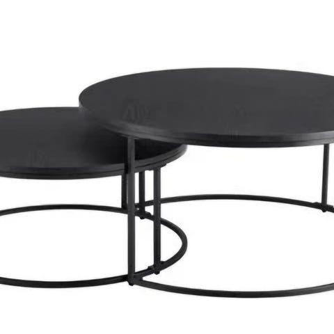 Salongbordet har en ramme i pulverlakert sort, bordplate av sort herdet 8mm glass. Produktet er ferdig montert.Str. Ø60x57 / Ø50x52 / Ø40x46