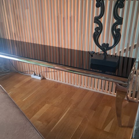 Merk! Mangotreet har et bredt spekter av farger fra naturens side, derfor kan noen deler av treplaten ha innslag av grønt og gult. Selv om produktet er behandlet med farge, vil dette kunne skinne igjennom i enkelte partier på grunn av treets naturlige farge.Konsollbordet finnes også i fargen svart til 8490,-