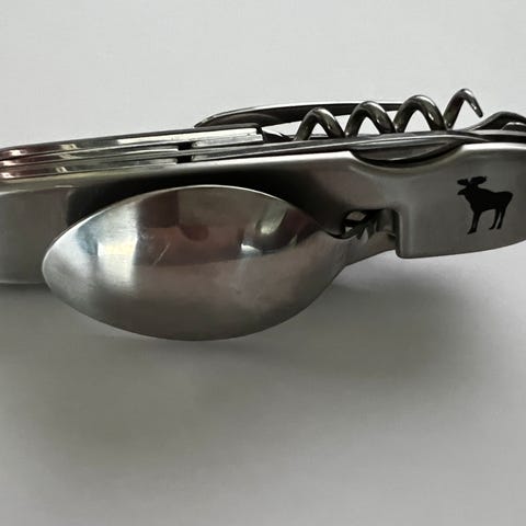 Sammenleggbart bestikksett av rustfritt stål til bruk ved friluftsliv eller når du er på farta. Kommer med oppbevaringspose av plastikk.
