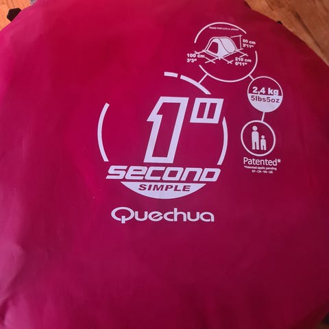 Quechua pop-up telt for tre personer. Soveplass på 60 cm per person, totalt 180 cm bredt. Dobbel duk som gjør at man ikke får fuktighet inn. Vanntett, og veldig enkelt å sette opp. Tar 2 sekund. Max 1 min om du regner med pinnene som skal i bakken. Lommer på innsiden. Tar litt lengre tid å få sammen, men teknikken kan gjennomgås før utleie.