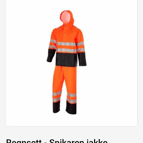 Pegasus jakke 305 med avtakbar og regulerbar hette. Glidelås med stormklaff. Manchesterfôret krage, frontlommer, justerbare mansjetter. Refleks rundt livet og ermene. Rygglengde 92 cm i størrelse large. Pegasus 203 bukse med strikk og snøring i livet, refleks og justerbare beinavslutninger.